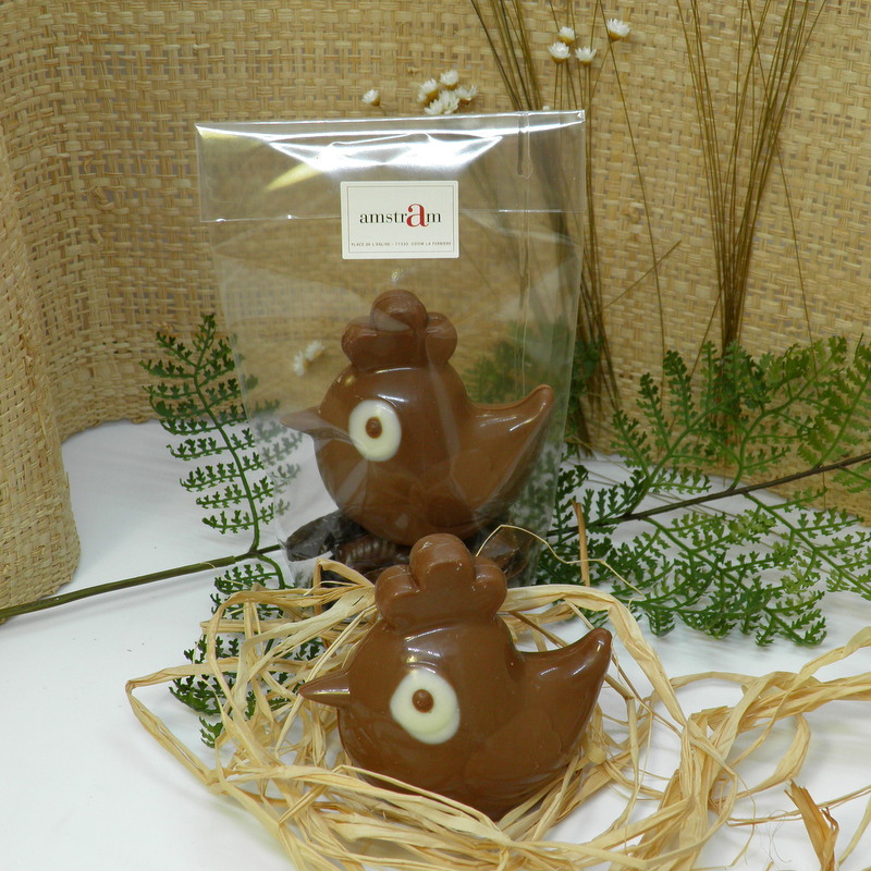 Ce sujet existe en noir, lait et est proposé en boutique en chocolat blanc.